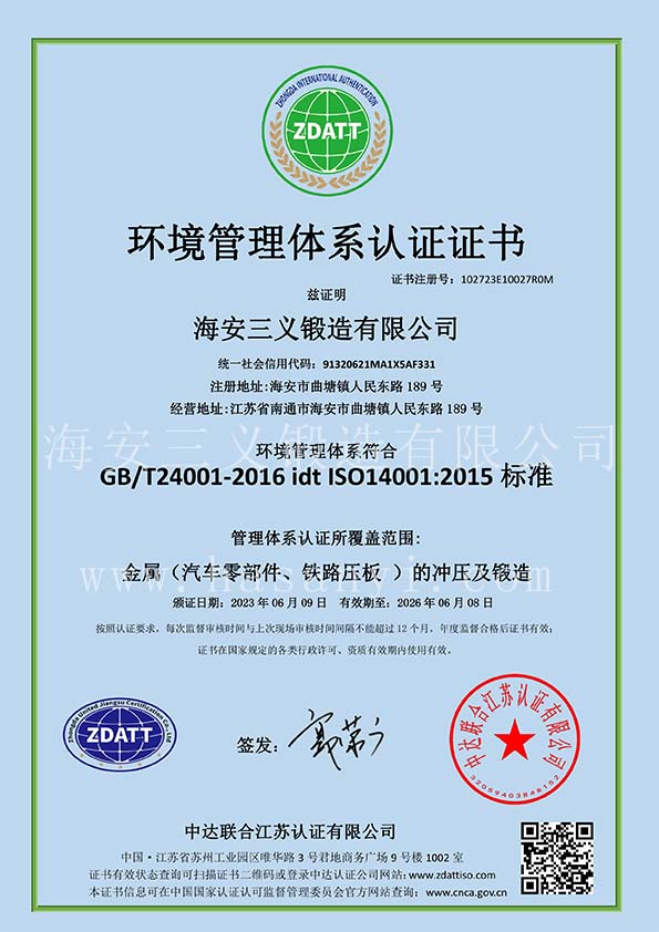 | 環(huán)境管理體系認(rèn)證證書 |